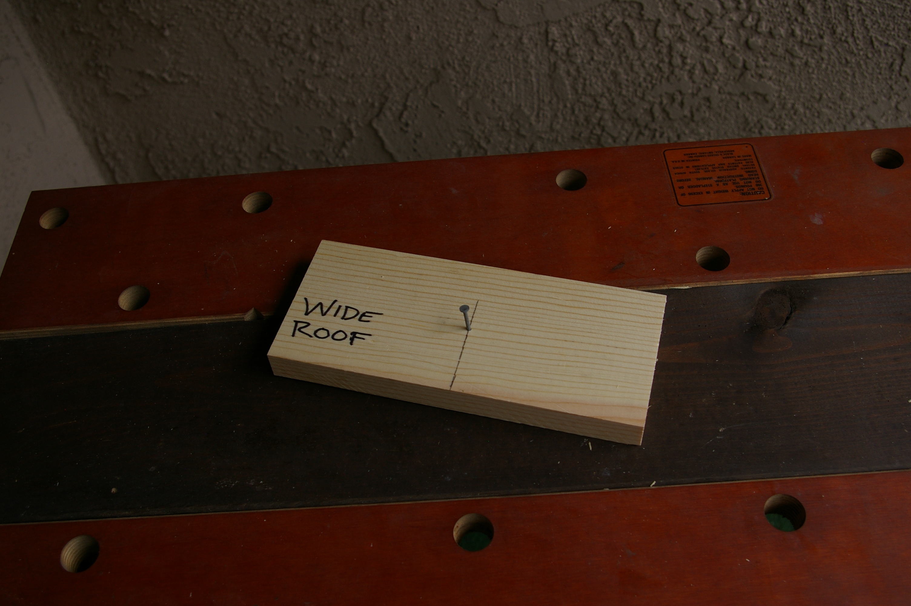 Put a nail in the middle of the wide roof. Like the sides and ends have the point just sticking out.