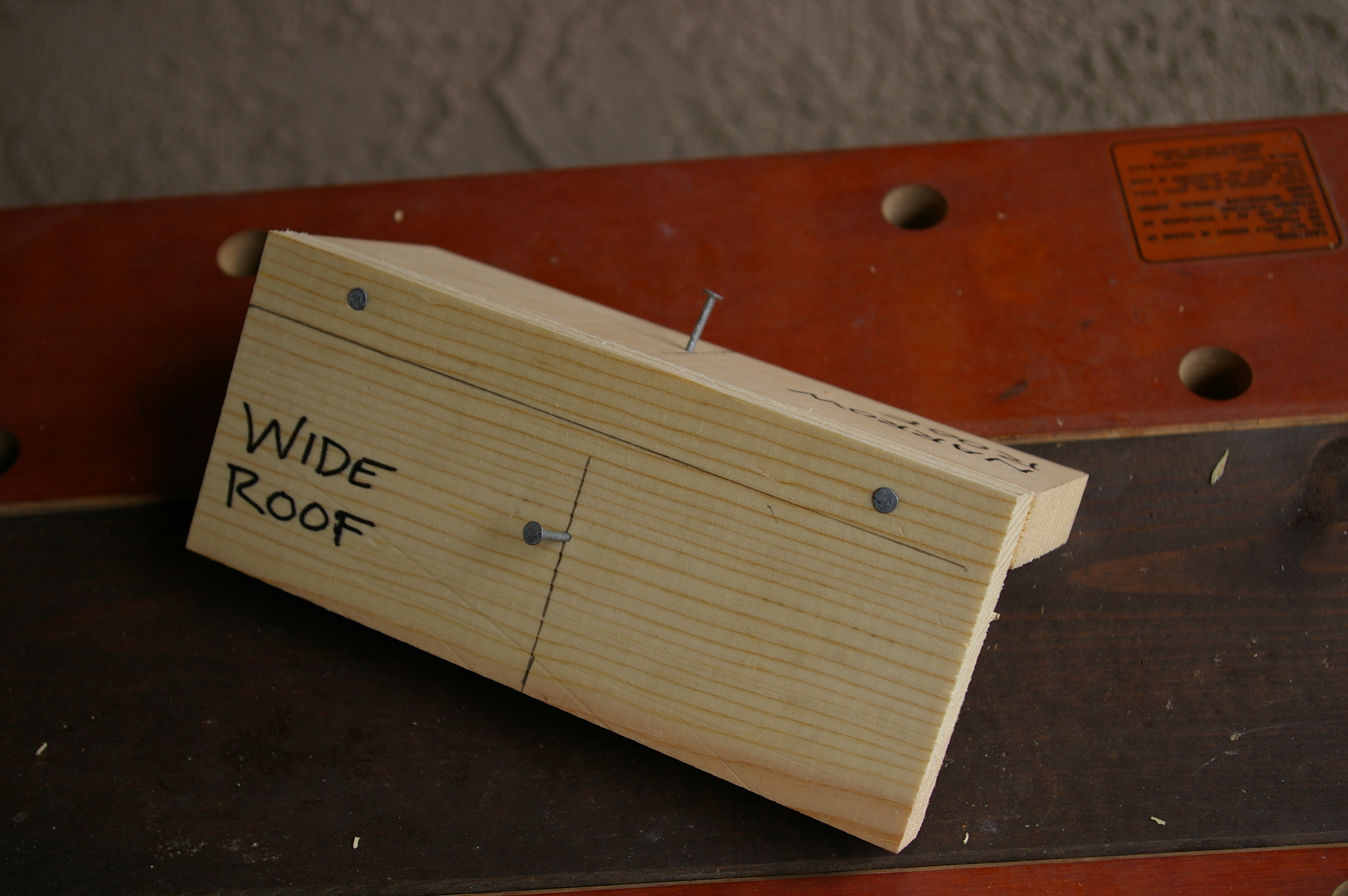 The nails in the middle of the roof pieces are still sticking out. They will be driven in later.