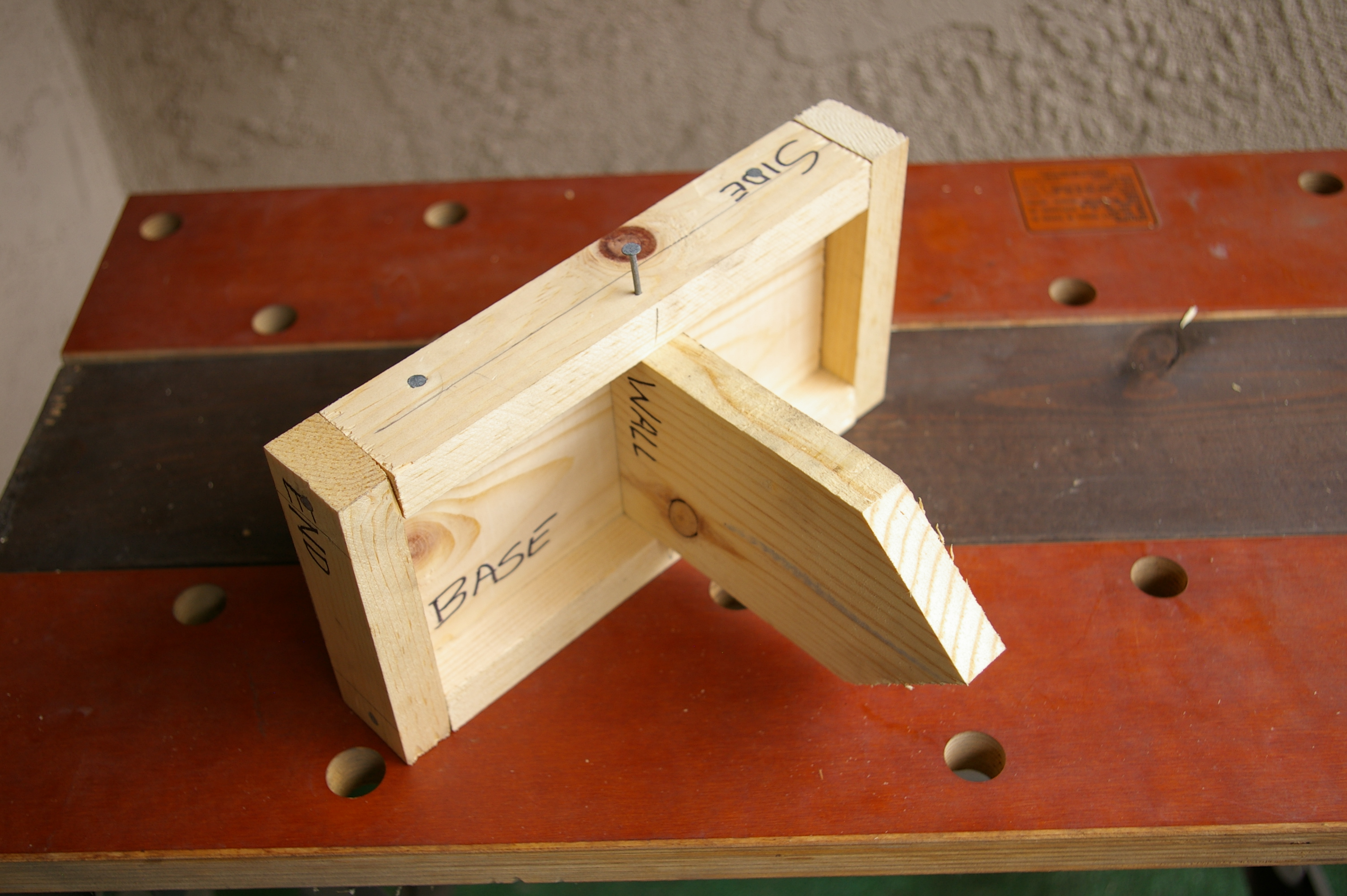 Slide the wall into the assembled base. Make sure that the wall is tight to the bottom. Drive a nail through the side into the wall.