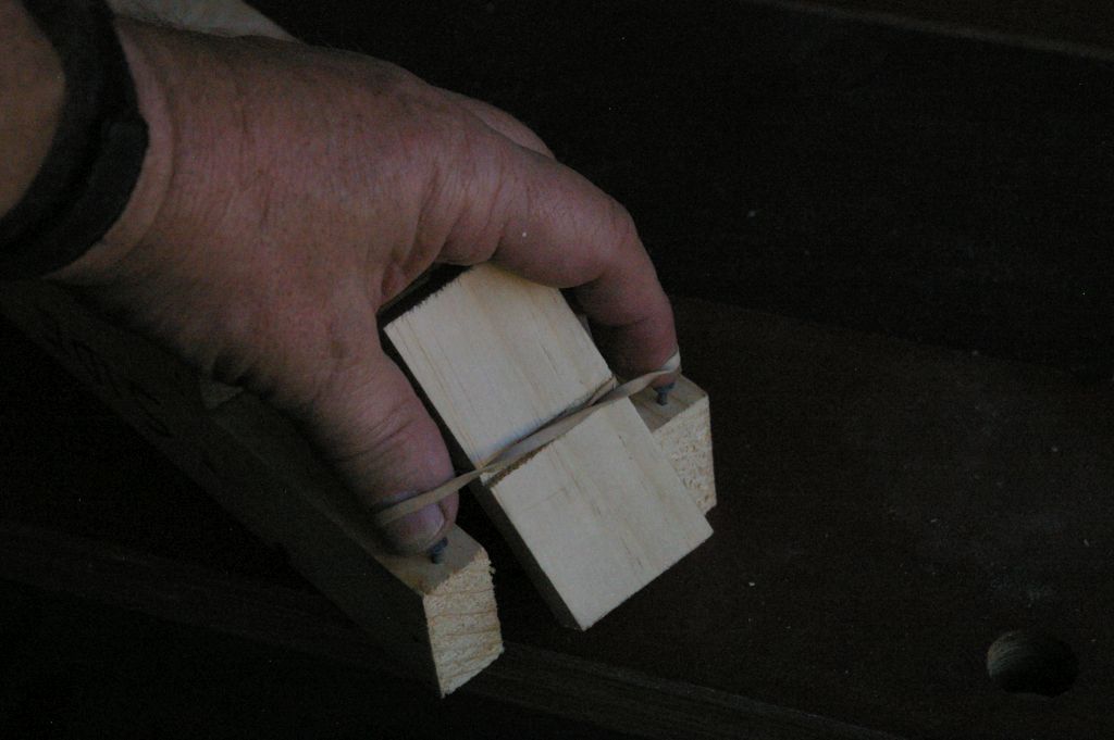 Put your fingers on the tops of the nails. Slide the rubberband off of your fingers and onto the nails.