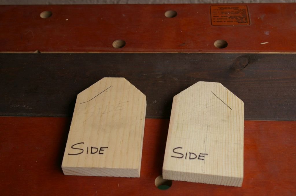 Use the stop block to mark the other side piece. See how the marks are on different edges of the side pieces.
