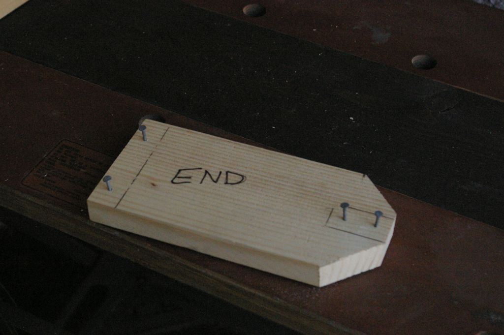 Start four nails in the end piece. Put these in the middle of where the handle and base will be.